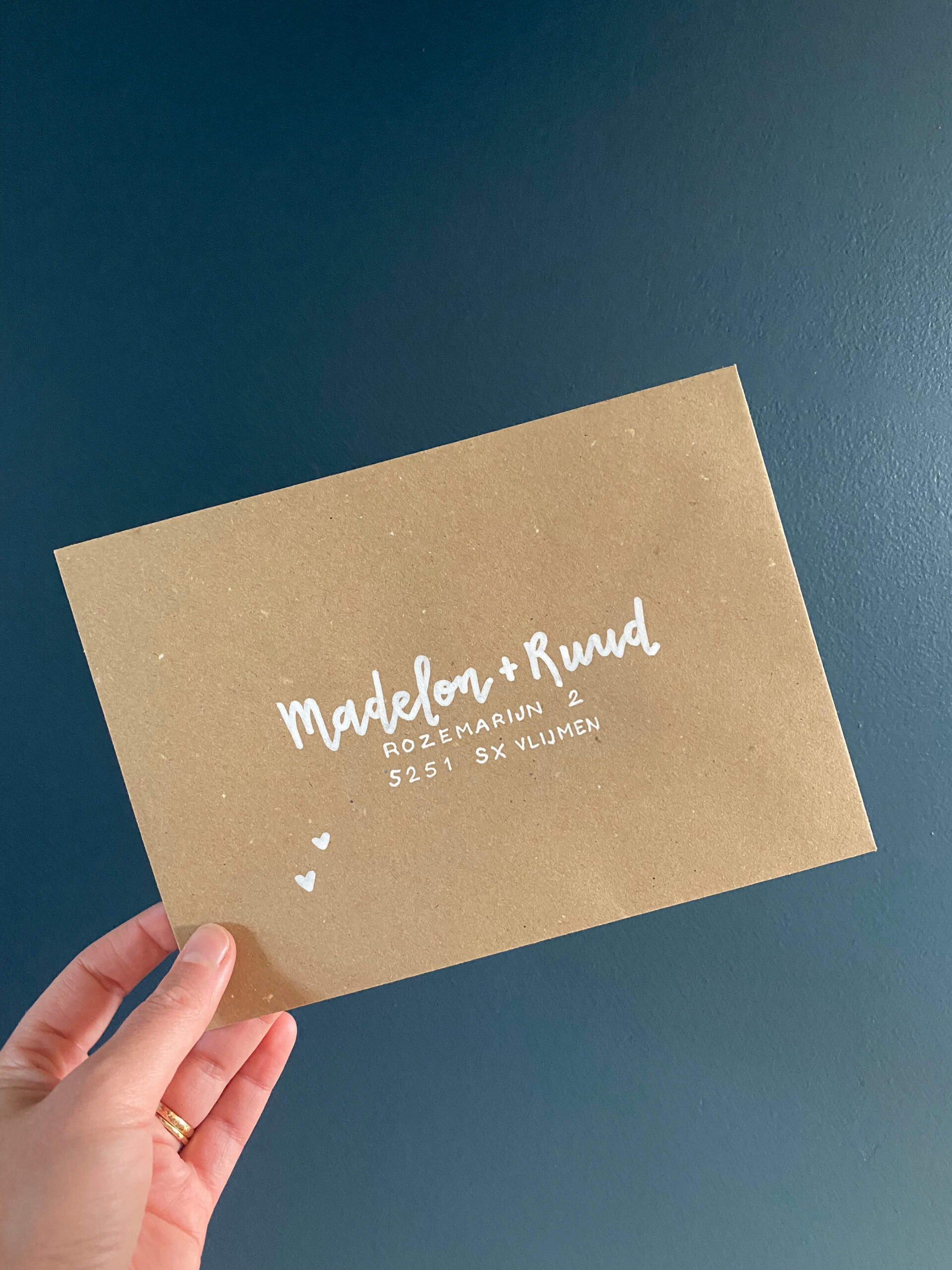 Maak je uitnodiging nóg specialer met een handgeschreven envelop. Stijlvol, uniek en met zorg geadresseerd.