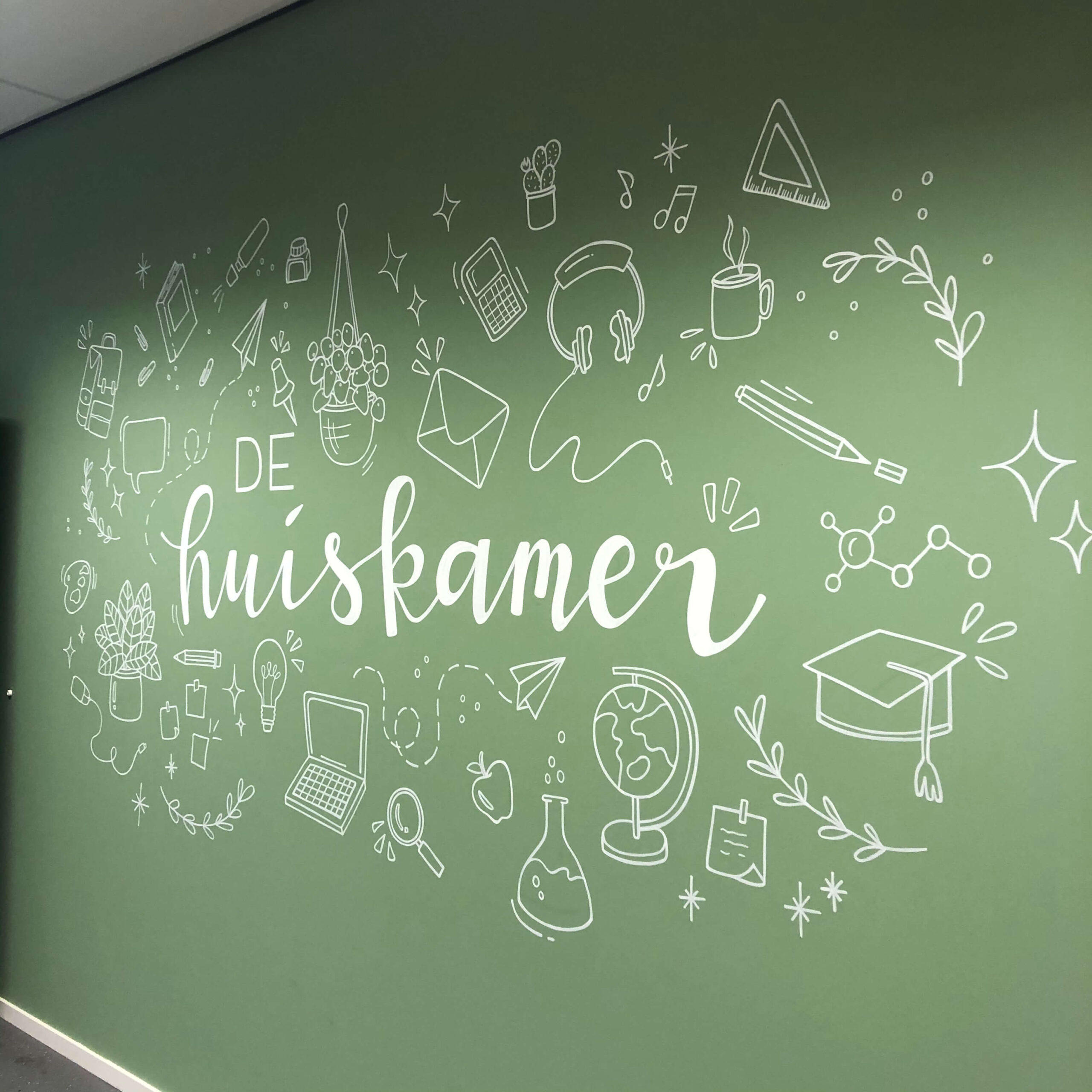 🎨 Uitvoering op locatie – Met de hand getekend, direct op de muur!